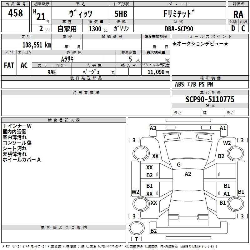 TOYOTA VITZ 2009 г., лот № 458