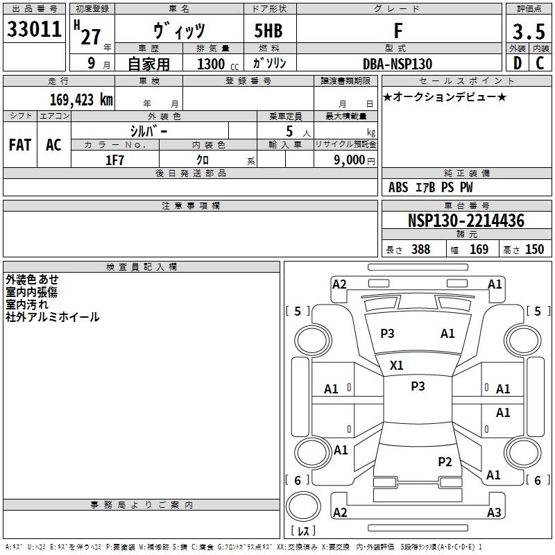 TOYOTA VITZ 2015 г., лот № 33011
