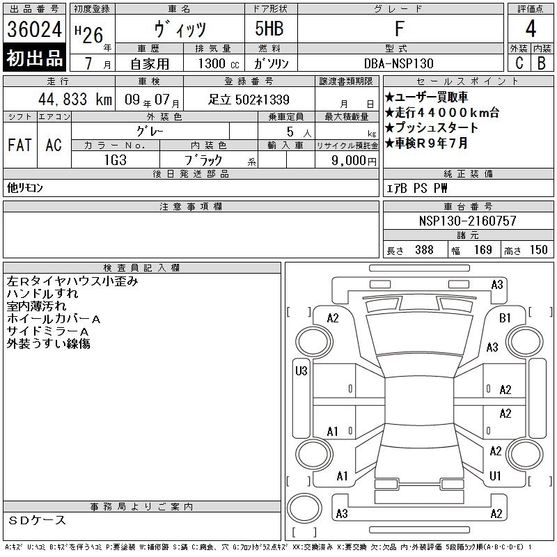 TOYOTA VITZ 2014 г., лот № 36024
