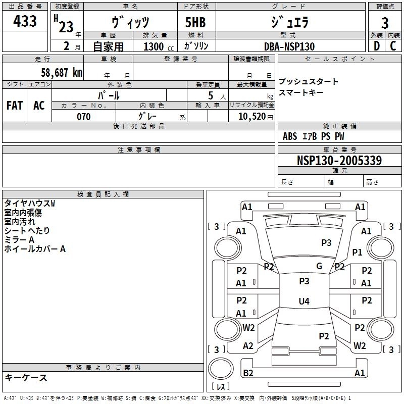 TOYOTA VITZ 2011 г., лот № 433
