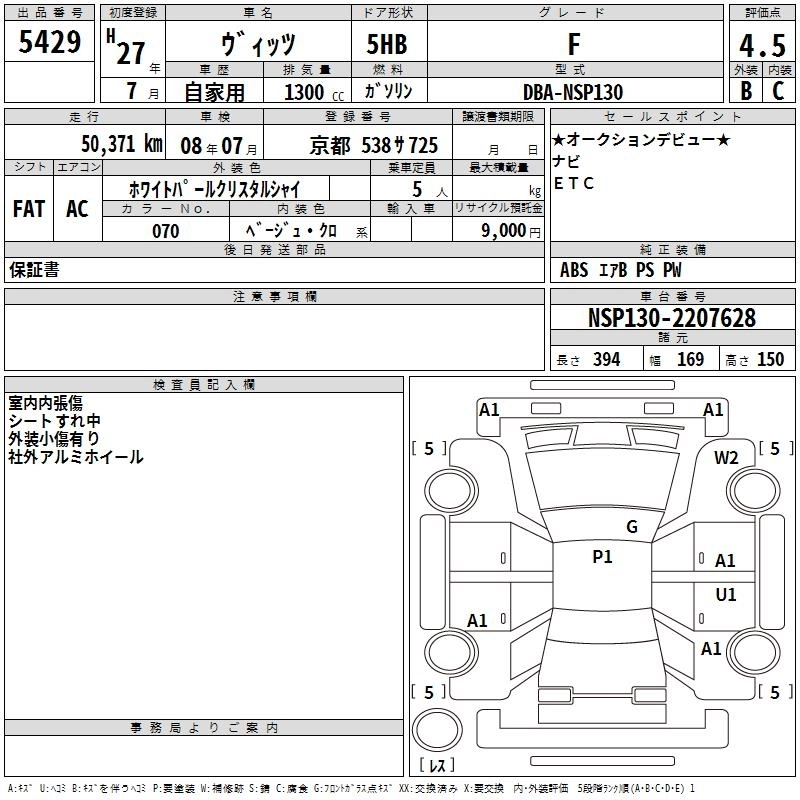 TOYOTA VITZ 2015 г., лот № 5429
