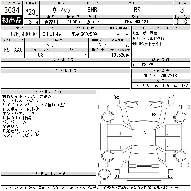 TOYOTA VITZ 2011 г., лот № 3034