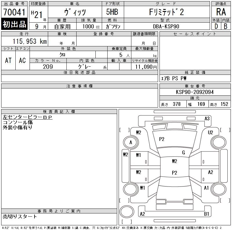 TOYOTA VITZ 2009 г., лот № 70041