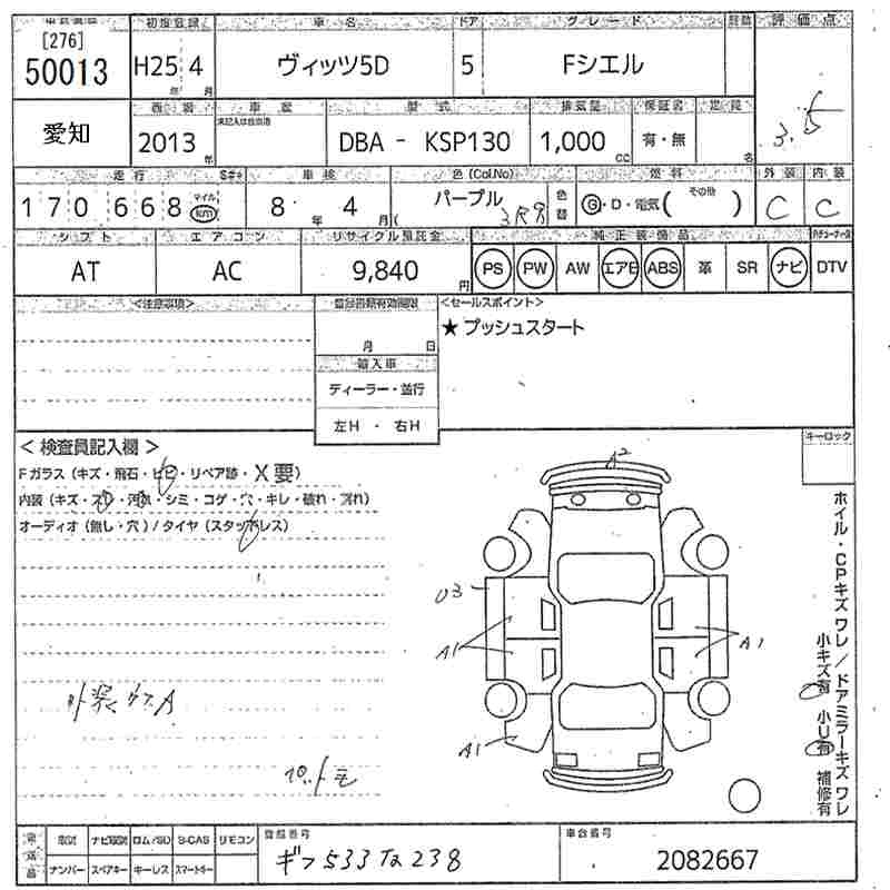 TOYOTA VITZ 2013 г., лот № 50013