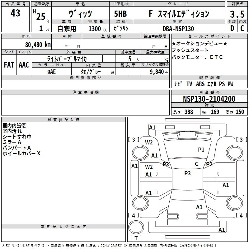 Год выпуска2013 Пробег 80 000 км КузовNSP130 КомплектацияFS MILE EDITION