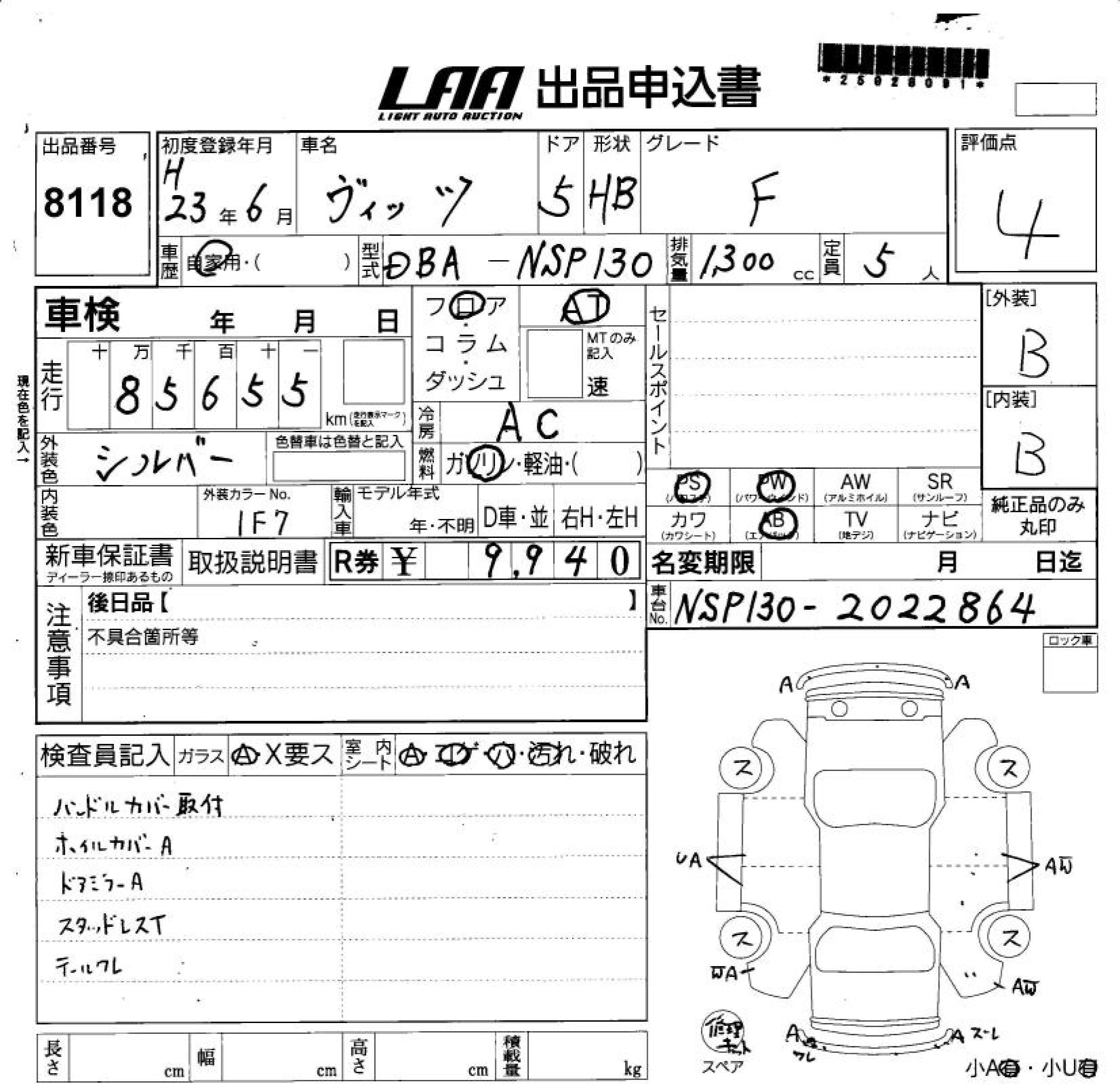 Статус выставлен на аукцион Лот 8118 Аукцион LAA Shikoku Дата аукциона 04.02.2026