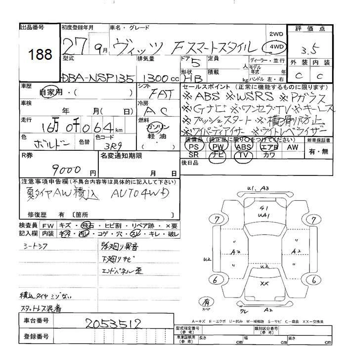 TOYOTA VITZ 2015 г., лот № 188