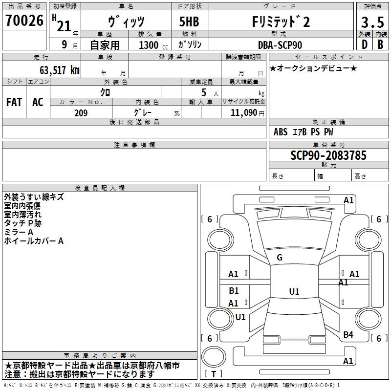 TOYOTA VITZ 2009 г., лот № 70026