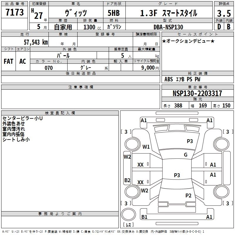 Год выпуска2015 Пробег 58 000 км КузовNSP130 Комплектация1.3F SMART STYLE