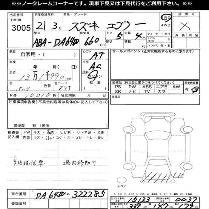Стартовая цена авто на аукционе 10 000 ¥
