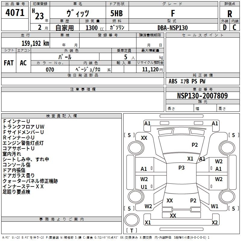 Год выпуска2011 Пробег 159 000 км КузовNSP130 КомплектацияF