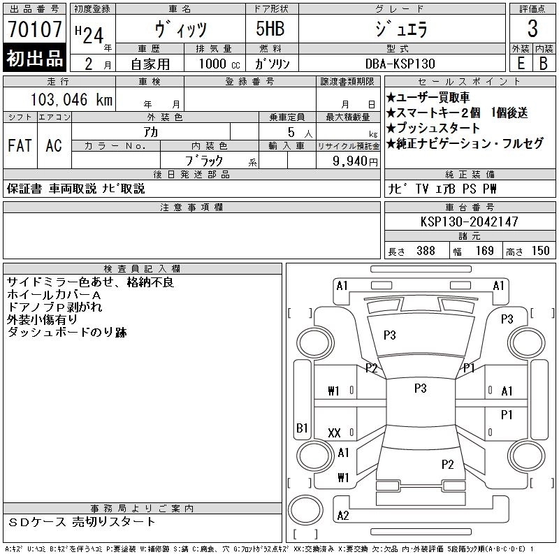 TOYOTA VITZ 2012 г., лот № 70107