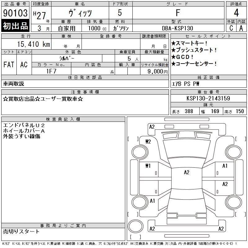 TOYOTA VITZ 2015 г., лот № 90103