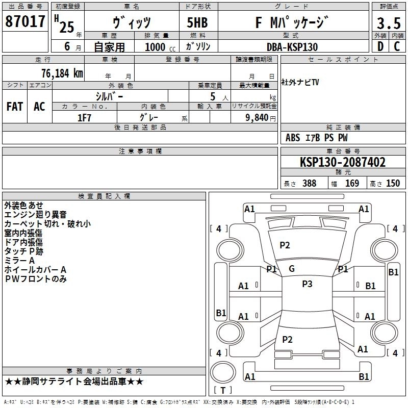TOYOTA VITZ 2013 г., лот № 87017