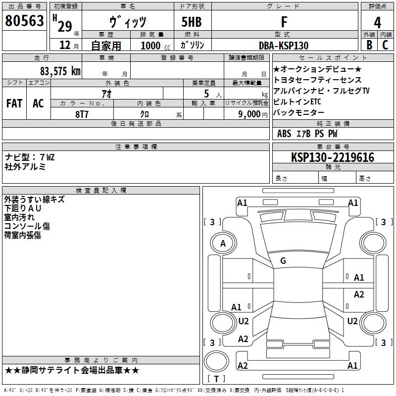 TOYOTA VITZ 2017 г., лот № 80563