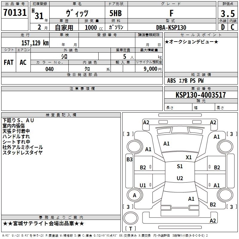 TOYOTA VITZ 2019 г., лот № 70131