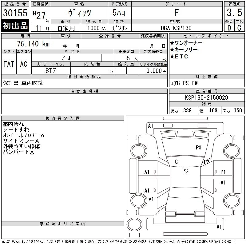 TOYOTA VITZ 2015 г., лот № 30155