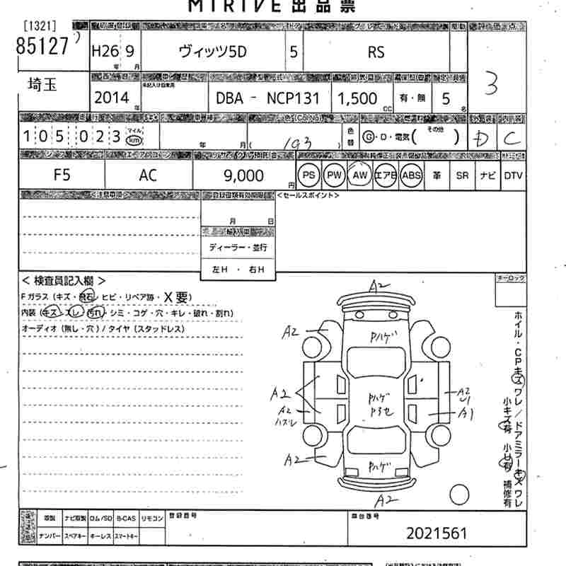 TOYOTA VITZ 2014 г., лот № 85127