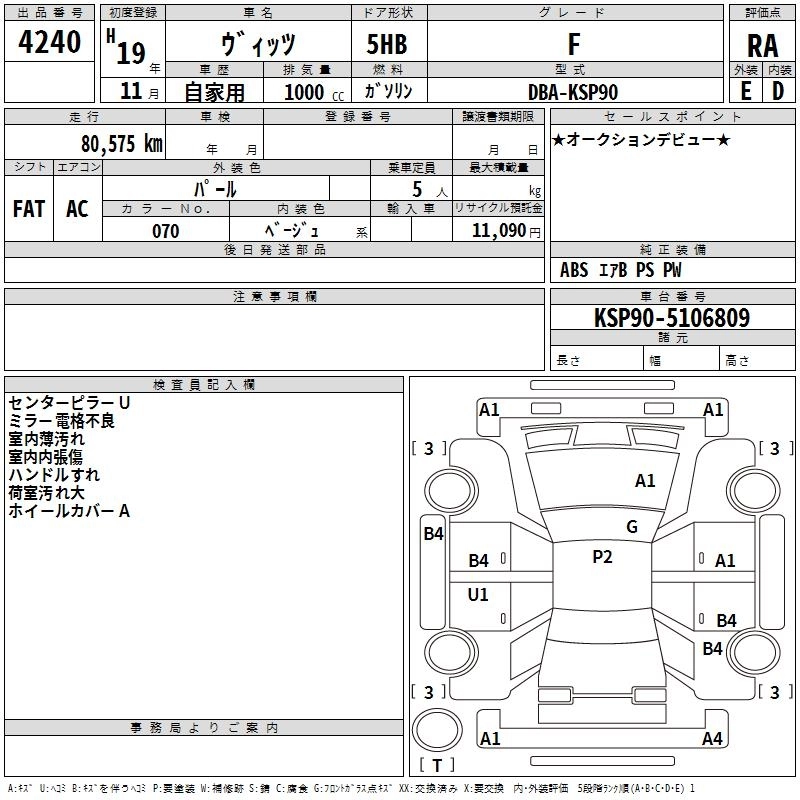 TOYOTA VITZ 2007 г., лот № 4240