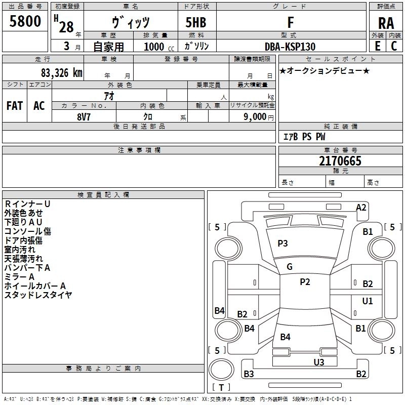 TOYOTA VITZ 2016 г., лот № 5800