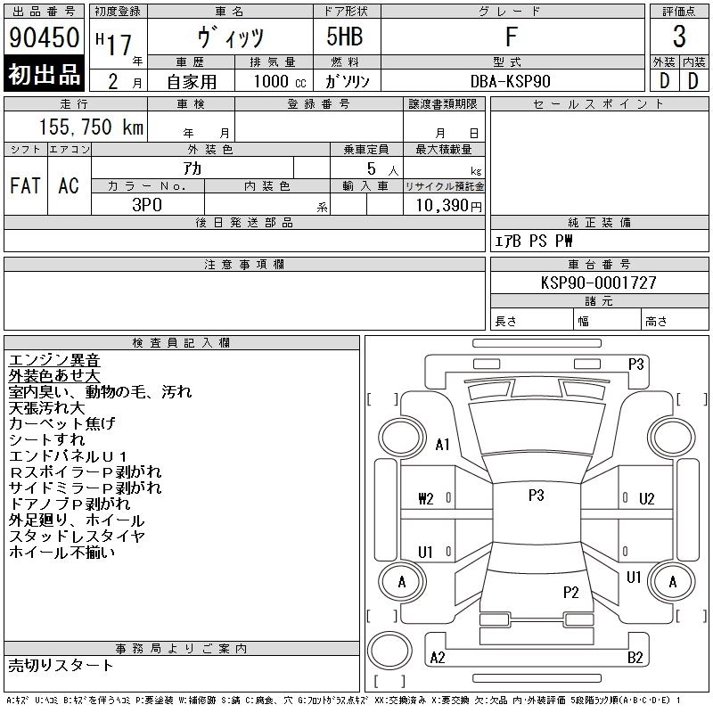 Статус выставлен на аукцион Лот 90450 Аукцион CAA Chubu Дата аукциона 11.03.2026