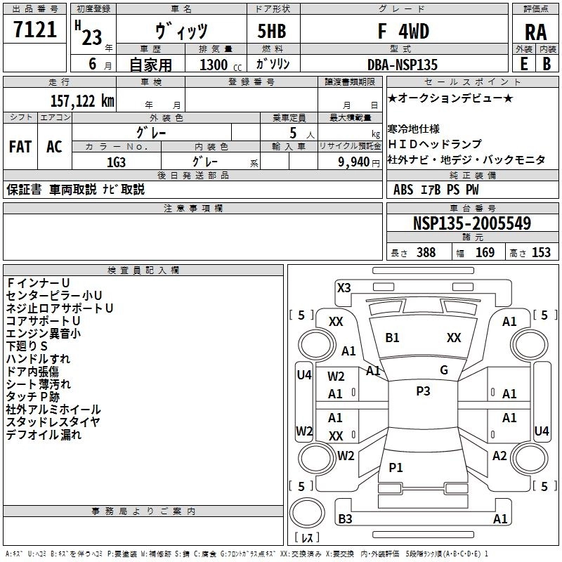Год выпуска2011 Пробег 157 000 км КузовNSP135 КомплектацияF 4WD