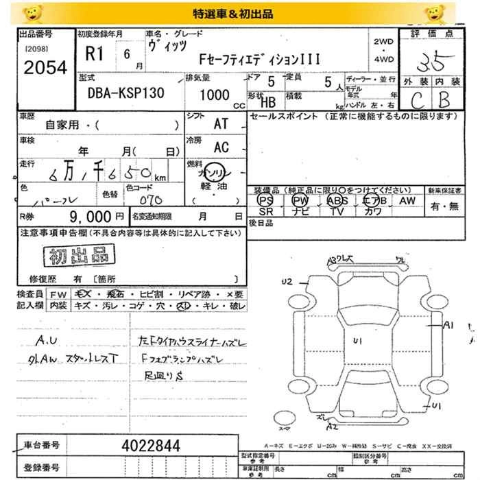 TOYOTA VITZ 2019 г., лот № 2054