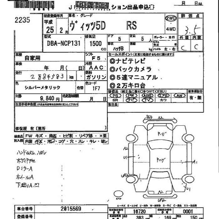 TOYOTA VITZ 2013 г., лот № 2235