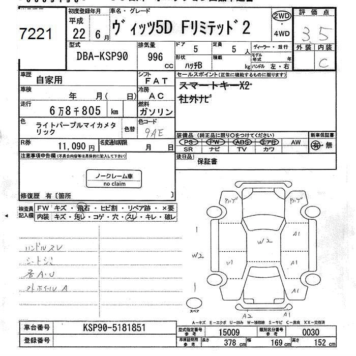 TOYOTA VITZ 2010 г., лот № 7221