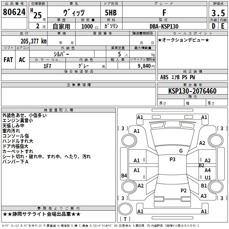 TOYOTA VITZ 2013 г., лот № 80624
