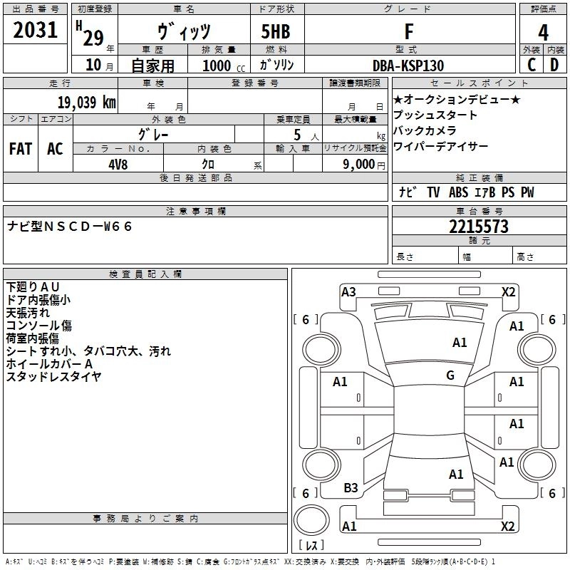 TOYOTA VITZ 2017 г., лот № 2031