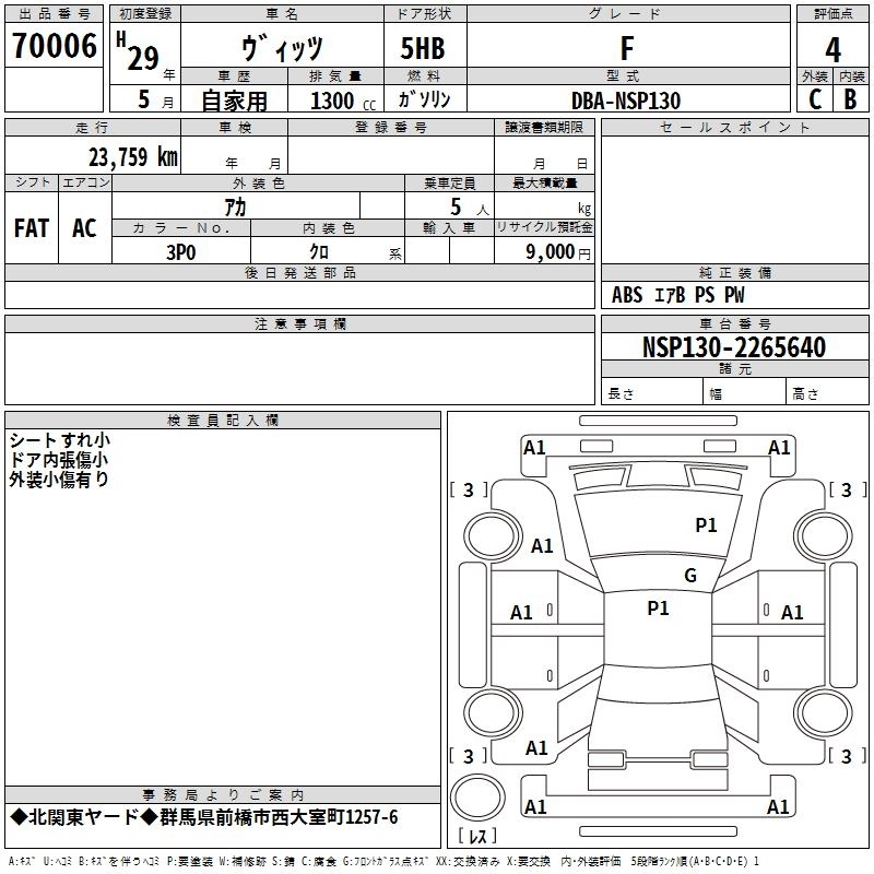 TOYOTA VITZ 2017 г., лот № 70006