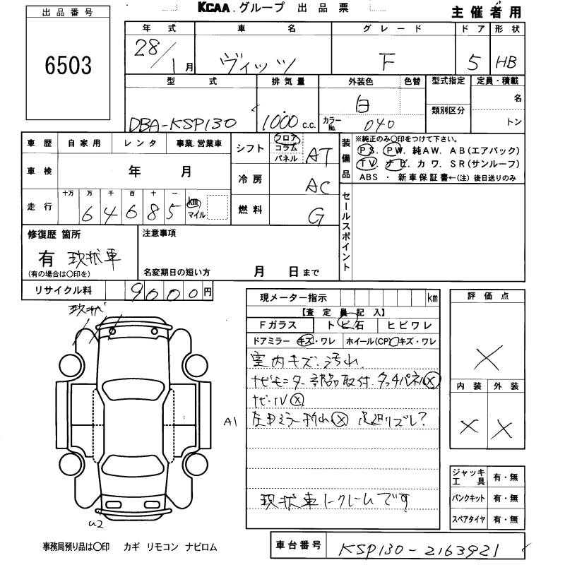 TOYOTA VITZ г., лот № 6503