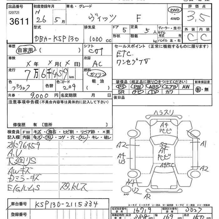 TOYOTA VITZ 2014 г., лот № 3611