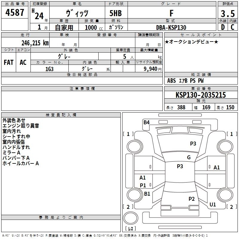 TOYOTA VITZ 2012 г., лот № 4587