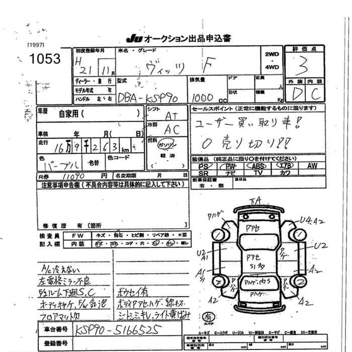 Год выпуска2009 Пробег 169 000 км КузовDBA-KSP90 КомплектацияF