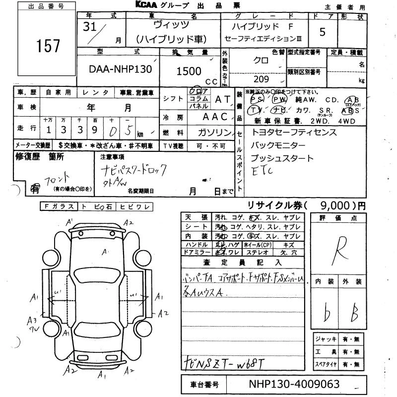 TOYOTA VITZ 2019 г., лот № 157