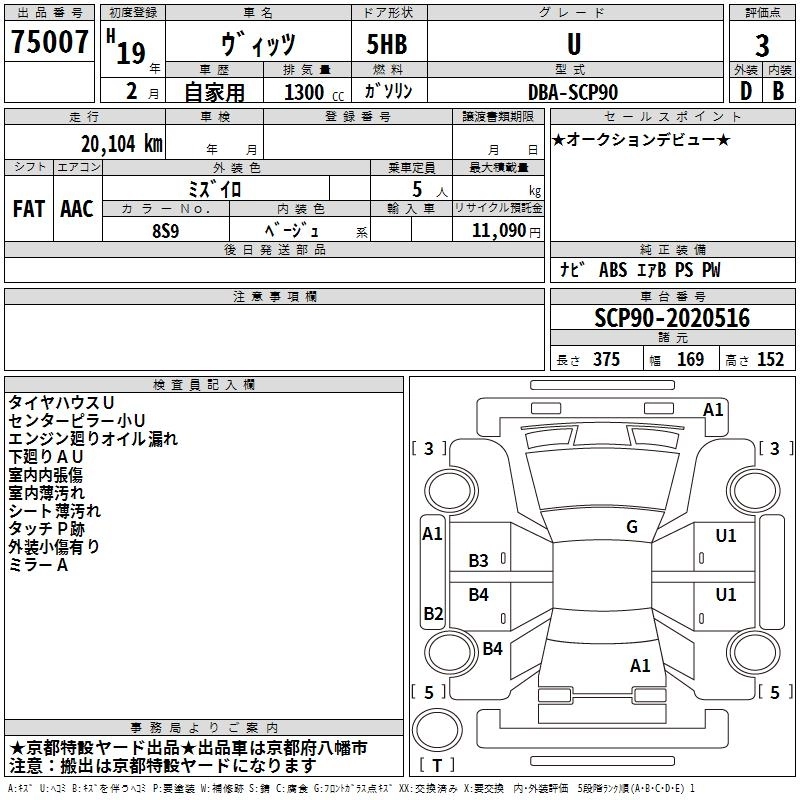 TOYOTA VITZ 2007 г., лот № 75007