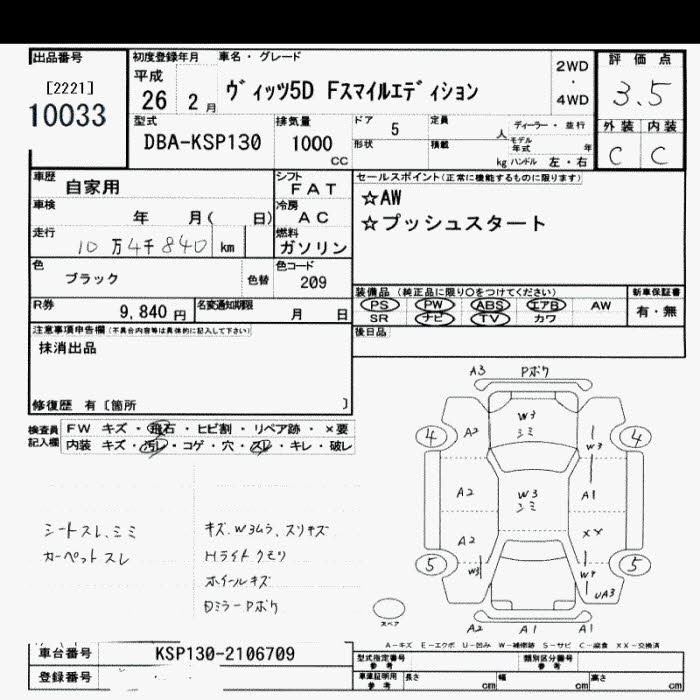 TOYOTA VITZ 2014 г., лот № 10033