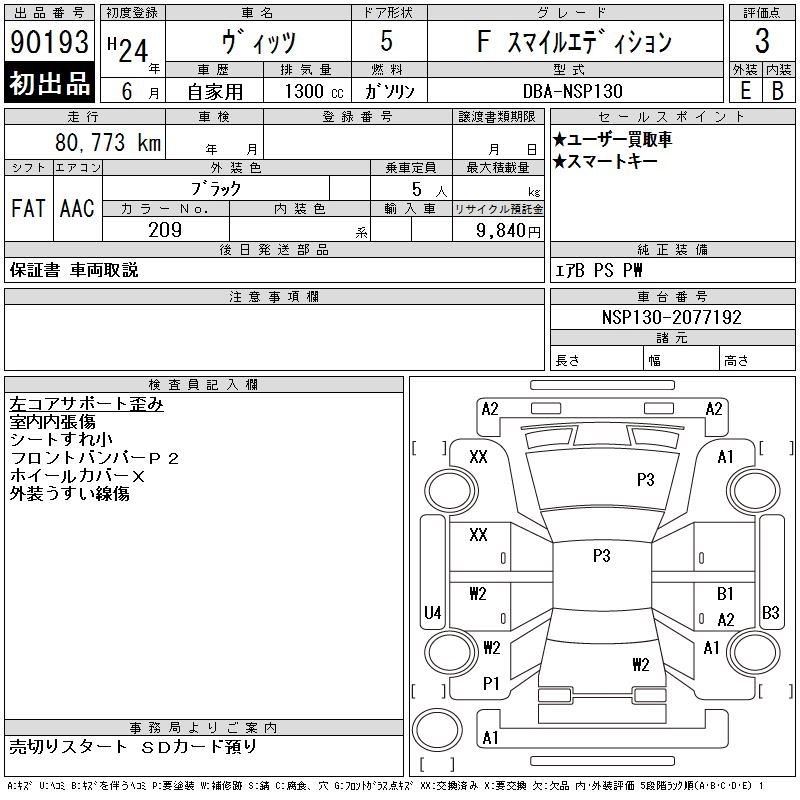 Год выпуска2012 Пробег 81 000 км КузовNSP130 КомплектацияFS MILE EDITION