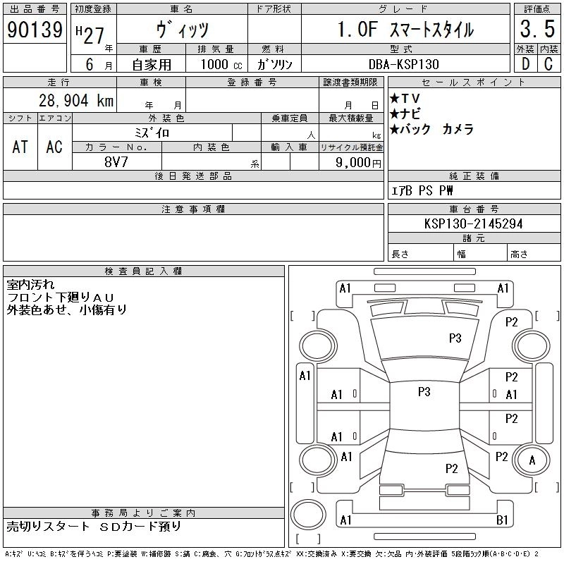 TOYOTA VITZ 2015 г., лот № 90139