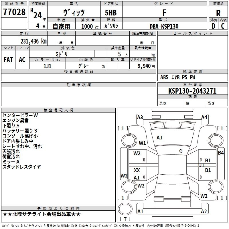 TOYOTA VITZ 2012 г., лот № 77028