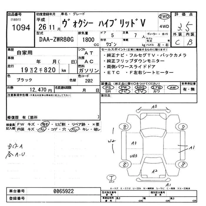 TOYOTA VOXY 2014 г., лот № 1094