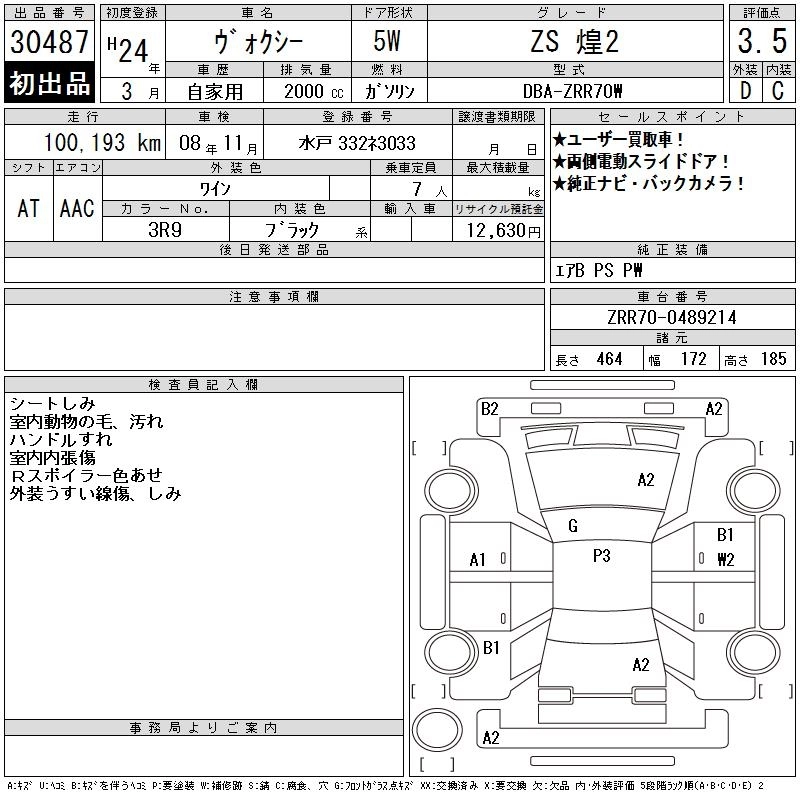 TOYOTA VOXY 2012 г., лот № 30487