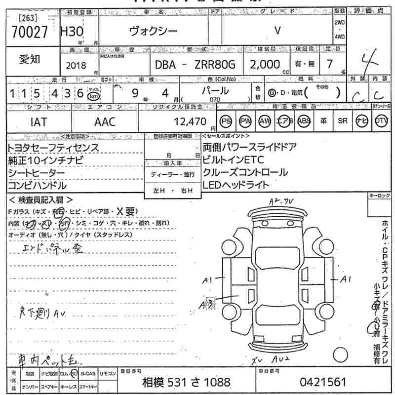 TOYOTA VOXY 2018 г., лот № 70027