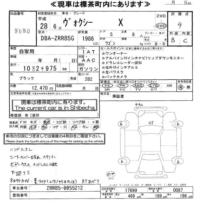 TOYOTA VOXY 2016 г., лот № 8080