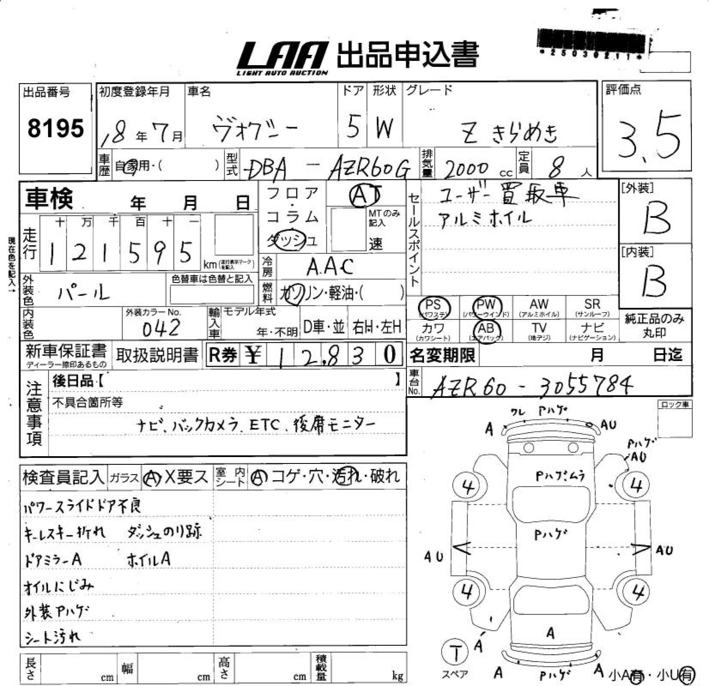 TOYOTA VOXY 2006 г., лот № 8195
