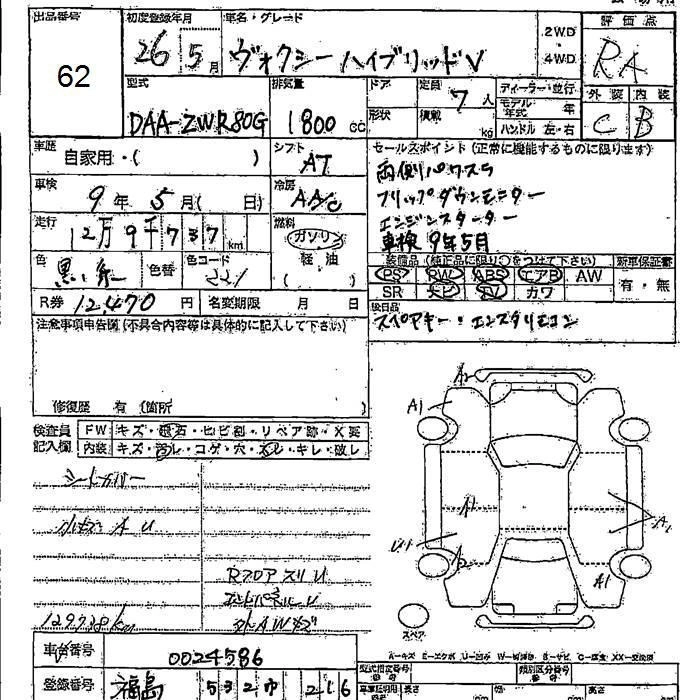 TOYOTA VOXY 2014 г., лот № 62