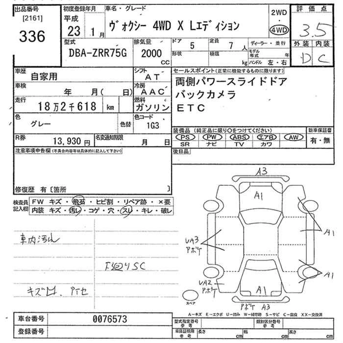 TOYOTA VOXY 2011 г., лот № 336