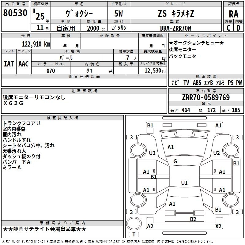 TOYOTA VOXY 2013 г., лот № 80530